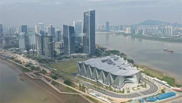 这是2025年12月11日拍摄的位于广州市南沙区明珠湾灵山岛尖的大湾区科学会堂(无人机照片)。记者 邓华 摄
