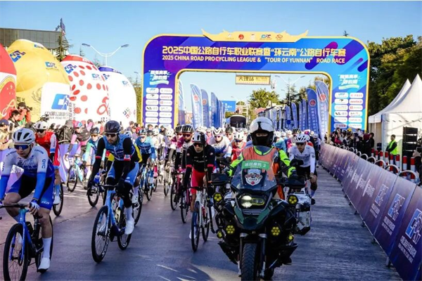 12月7日,2025中国公路自行车职业联赛暨“环云南”公路自行车赛第二站在大理白族自治州大理市开赛。赛事以“跟着赛事游云南,畅享有一种叫云南的生活”为主题,共有20支职业车队的160名车手参赛。