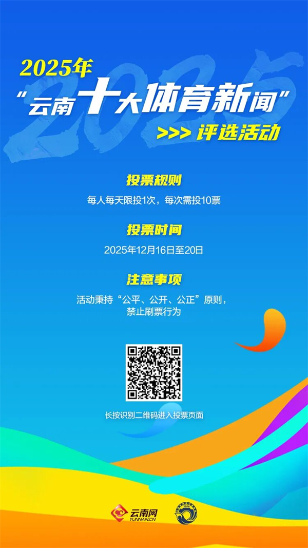 你的选择,不仅是对奋斗者的致敬、对体育精神的传递,更是对云南体育未来发展的期许与祝愿。不要错过,抓紧时间投票吧!