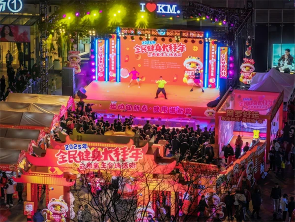 1月24日晚,昆明同德广场人声鼎沸,2025年全民健身大拜年云南省主会场活动在此启幕。千余名市民走出家门,参与体育健身游园、新春集福打卡,体验非遗糖画制作、旱地冰壶等趣味项目,商圈内运动与年味交织,成为昆明“体育+消费”融合的缩影。同德广场负责人说:“体育活动与商圈相互赋能,以‘流量’谋‘留量’,让商圈更具吸引力。”数据显示,仅2025年春节期间,云南省就举办近200场全民健身活动,带动30万人次参与,冰雪消费券发放、滑雪场优惠等活动更让市民就近享受冰雪乐趣。