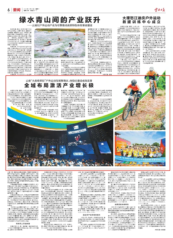 2024年,云南发布全国首个以省政府名义支持区域户外运动发展的政策,“大香格里拉”户外运动发展集聚区、体验区品牌破局出圈,成为示范样板。自“两区”建设一年来,通过户外运动全域布局产品、全域打造品牌、全域融合业态、全域搭建平台,“大香格里拉”地区户外运动产业实现精品赛事、线路、场景多重突破,均占全省近三分之一,户外运动人数占旅游人数比例增速超20%,体育经营主体数量实现倍增,大理、丽江入选首批国家高质量户外运动目的地,迪庆、怒江形成了以户外运动产业为引领的发展格局,成功打造一批省级户外运动目的地,发展成效引领全省、示范全国,户外运动产业已成为当地经济发展新的增长点。