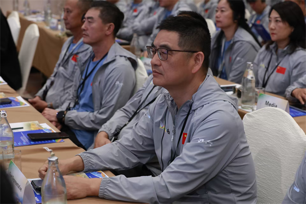 商贸交流会现场中泰双方代表、企业代表及车队齐聚一堂。中泰双方代表互赠象征中泰友谊长久的礼物,企业代表就体育经济与贸易投资、户外运动赛事组织、体育旅游项目开发等领域进行深入推介。