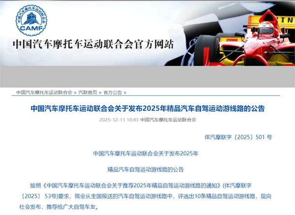 以上线路融合了多元自然景观、深厚人文底蕴和运动休闲元素,车友可沿这些线路沉浸式体验。未来,中国汽车摩托车运动联合会将继续挖掘和推广更多优质自驾资源,为广大自驾运动爱好者提供更专业、更丰富的出行选择。