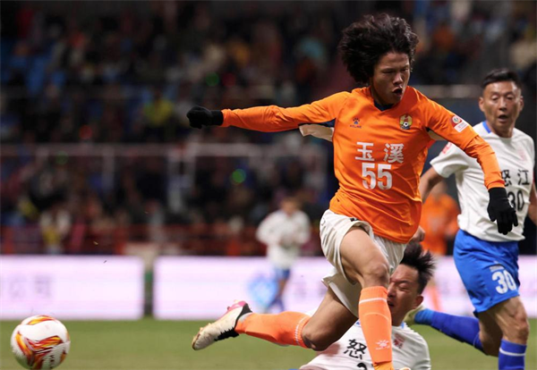 玉溪队球员带球突破。记者 周灿 摄