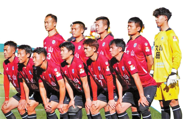 丽江队主场迎战文山队,以5:0成绩取得胜利。图为文山队队员合影。记者 和茜 吴沛钊 摄