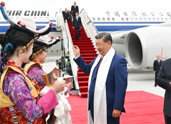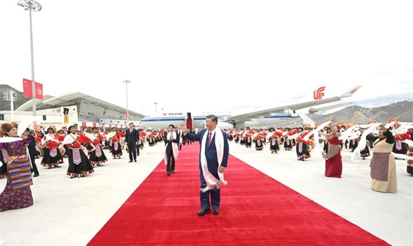 习近平作为中共中央总书记、国家主席、中央军委主席率中央代表团到西藏出席西藏自治区成立庆祝活动,在党和国家历史上是第一次。