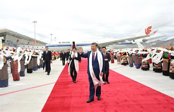 初秋的青藏高原,清风送爽。8月20日中午,习近平总书记率中央代表团抵达拉萨,出席西藏自治区成立60周年庆祝活动。
