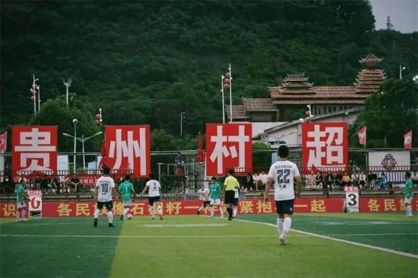 “怒江火腿”(云南怒江大峡谷足球队)与“榕江卷粉”(贵州榕江盘踅村足球队)交流赛在贵州村超足球场进行。来源:微游怒江微信公众号