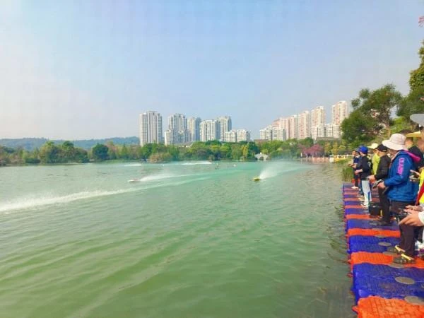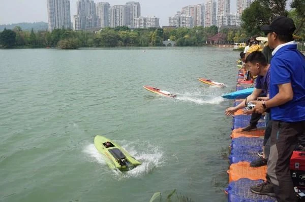 本次赛事共有来自云南、广东、广西、宁夏、贵州、湖南、海南、辽宁、重庆9个省(区、市)及香港特别行政区的78名航模老将和青少年参加。在为期两天的赛事中,参赛选手们围绕FSRV-1、FSRV-2(内燃机耐久拉力赛)、FSRO-1、FSRO-2(内燃机追逐赛)、MONO-1(电动方程式追逐赛)、MINI-ECO(电动三角绕标追逐赛)、ECO-EXP(迷你级电动三角绕标追逐赛)MINI-HYDRO(迷你级电动多体艇竞速赛)、MINI-MONO(迷你级电动方程式追逐赛)九个项目展开了激烈角逐。他们以湖为台、以水为幕,在碧波荡漾的湖面上精准操控,一艘艘模型船艇劈波斩浪,或如利箭穿波,或如银燕掠水,在水面划出一道道灵动的弧线,激起层层雪白浪花;岸边的现场观众屏息凝神、喝彩连连,见证着速度与技巧的完美融合。本次比赛,不仅展现了各地模型爱好者的技艺,更展现了体育与科技的交融之美。