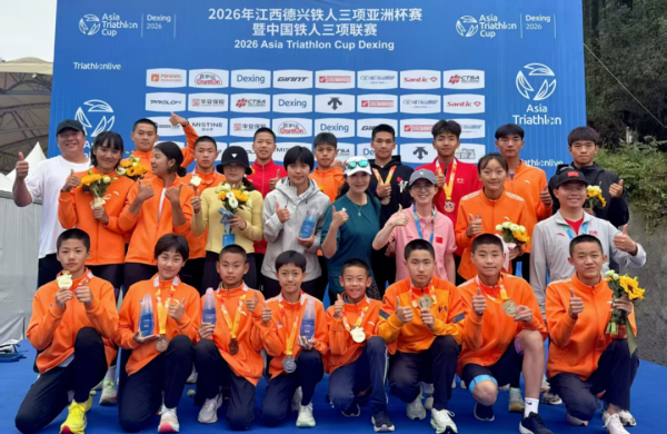 近日,2026年江西德兴全国铁人三项U系列冠军杯赛收官。云南铁人三项队的20名青少年健儿驰骋赛场,在10个赛事组别中奋勇拼搏,最终斩获6金3银3铜,另有7个名次跻身五至八名。