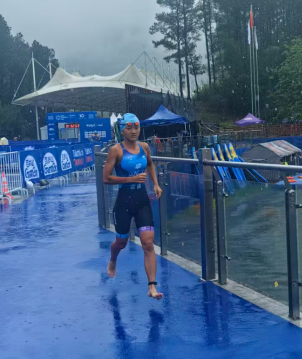 在暴雨中,男子U19组吹响赛事号角,罗云康以00:54:27的总成绩强势夺冠。游泳赛段首个起水,自行车、跑步全项环节稳定发挥,为云南队拿下首金,展现了云南青年铁三选手的顶尖竞技水平。
