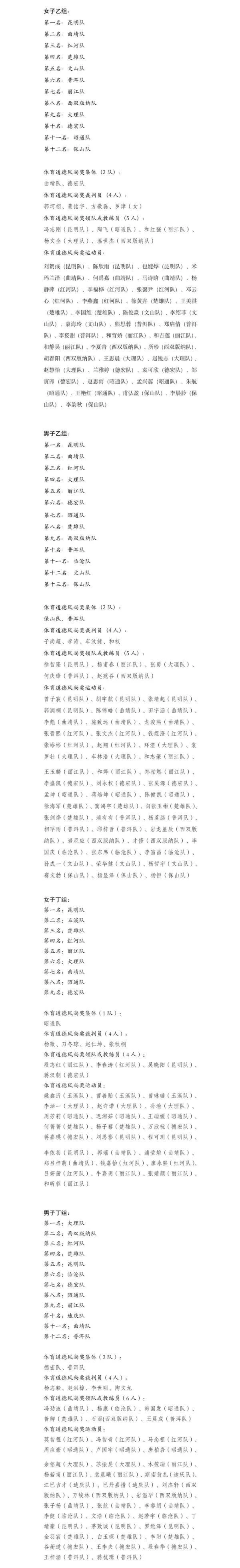 乙组的比赛在曲靖市马龙区月望湖体育公园举行。男子组共13支参赛队伍,女子组共12支参赛队伍,两个组别的冠亚军争夺战均在昆明队与曲靖队之间展开,最终昆明队获胜。