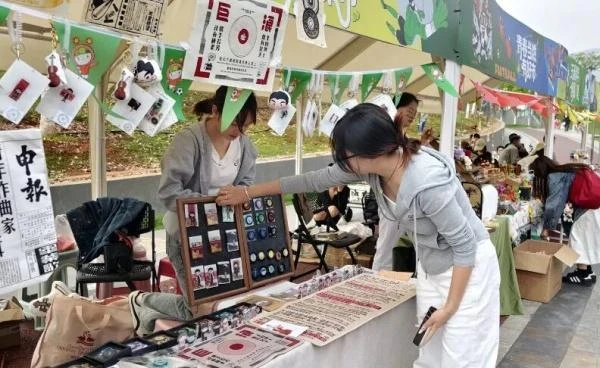 球迷在象往大道上的青年创意市集驻足选购。李瑞铭 摄