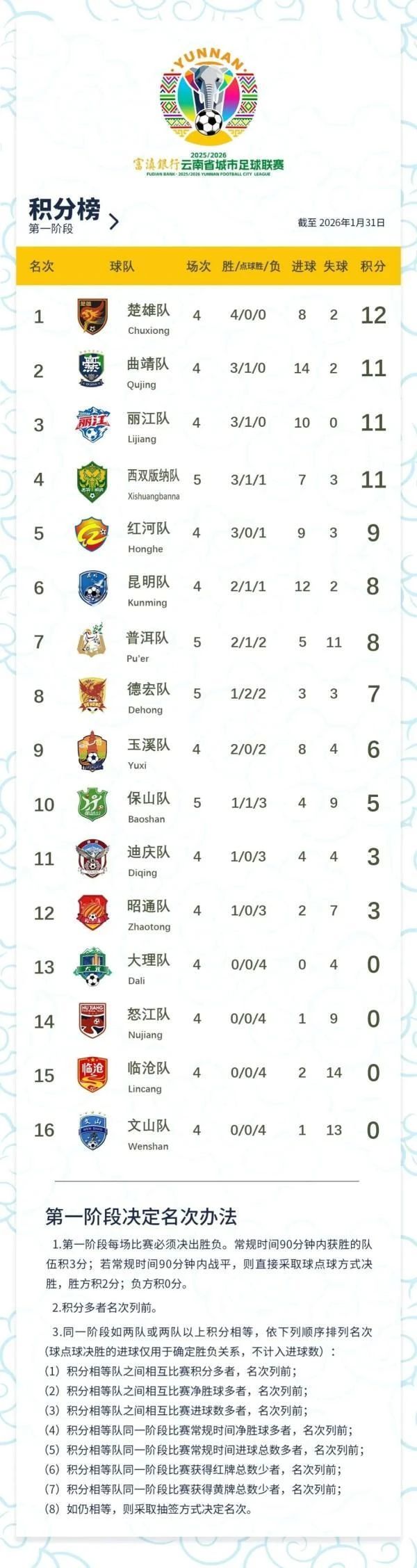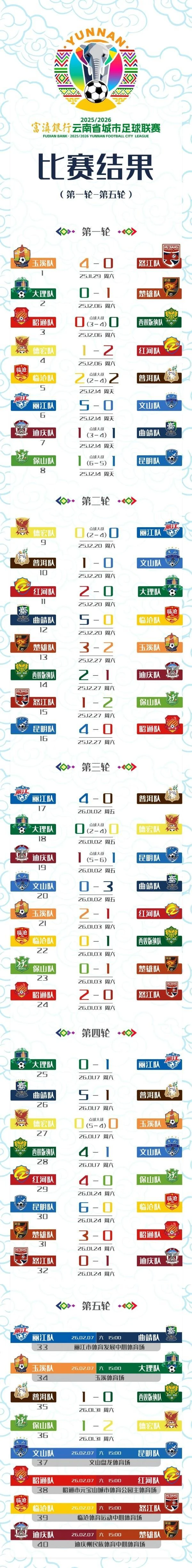滇超联赛第五轮第一比赛日率先开战的两场较量中,场序35对决,回归主场的普洱队终结连败颓势,1-0小胜劲旅西双版纳队。此役普洱队摆脱近期失利阴影,攻势强劲,第30分钟由77号林建行接队友传中,以凌空侧勾破门锁定胜局,西双版纳队虽全力反扑但未能改写比分,普洱队凭借关键进球斩获3分。场序36比赛中,保山队主场1-2不敌客场作战的德宏队。上半场保山队借助角球机会,由21号高宏杰乱战破门率先得分;下半场德宏队发起强势反扑,66号张俊与18号王奥哲先后建功完成反超,最终德宏队客场取胜,保山队遗憾错失积分。