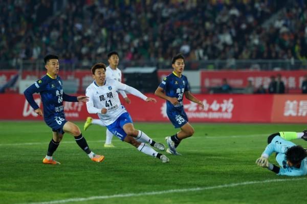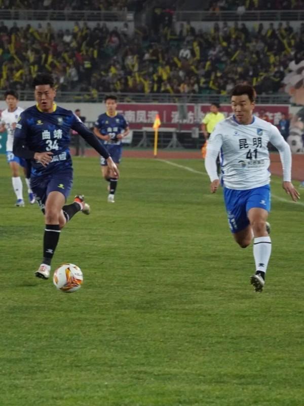 曲靖0-2昆明。本轮焦点战迎来一场强强对话,上轮结束后积分榜排名第3的曲靖主场迎来排名第2的昆明队。上半场比赛,双方展开激烈对攻,第36分钟,曲靖队禁区内犯规被判罚点球,昆明队10号沈辑星点射破门为客队取得领先;下半场第72分钟,昆明队在曲靖队大禁区前沿完成精妙配合,随后41号李浩文冷静推射扩大战果。最终,昆明队客场2-0力克曲靖队,取得6连胜的同时守住了积分榜第二名的位置。