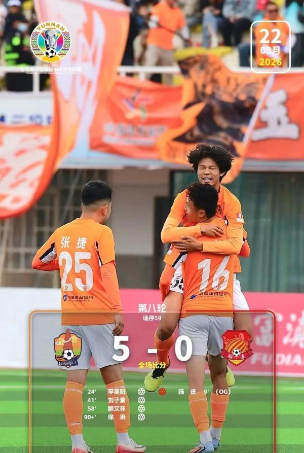 2026赛季云南省足球超级联赛第八轮全部战罢,本轮赛事多场对决呈现悬殊比分,积分榜前列球队悉数赢球过关,联赛争冠与核心排位格局保持稳定。