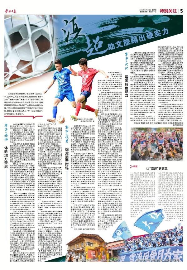 云南省城市足球联赛(“滇超联赛”)启动以来,各州市立足自身资源禀赋,创新打造“赛事+文旅”“赛事+消费”“赛事+文化”等联动模式,将绿茵场上的激情与地方文旅资源、民族文化、消费场景等有机结合,既点燃了全民参与体育的热情,又为市民和游客提供了沉浸式文体文旅体验,更有效激活消费市场,让“有一种叫云南的生活”更加鲜活、更具魅力。