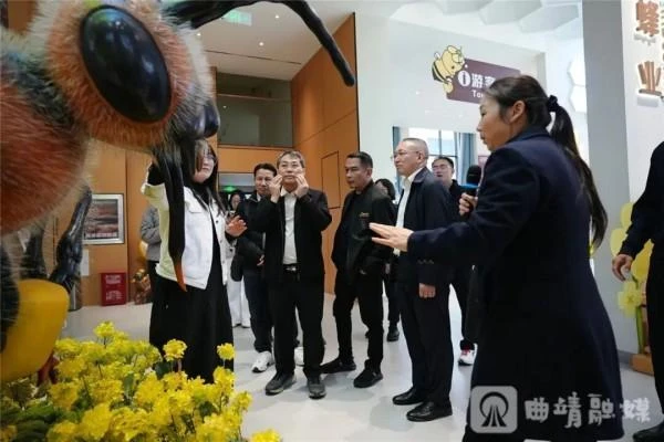 考察团随后走进罗平本地企业,深入了解高原特色产业发展。在“姜来无忧”企业,姜茶与咖啡的创新组合引发了泰国考察团嘉宾们的浓厚兴趣,其独特口感让嘉宾们连连称赞,黄姜精油也成为抢手货。在腊峰集团,色泽金黄的蜂蜜吸引嘉宾驻足。在详细了解罗平油菜花海蜜源优势及本地蜜蜂养殖的传统工艺后,大家纷纷购买蜂蜜,准备将这份甜蜜带回泰国分享。
