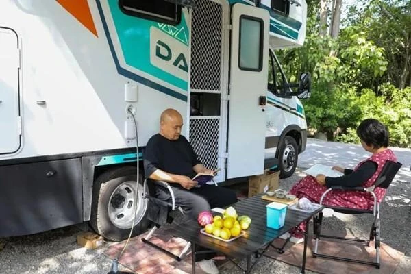 在依江风庄园房车营地,旅居客在清新自然的环境中享受悠然闲适的生活。沈阳 摄