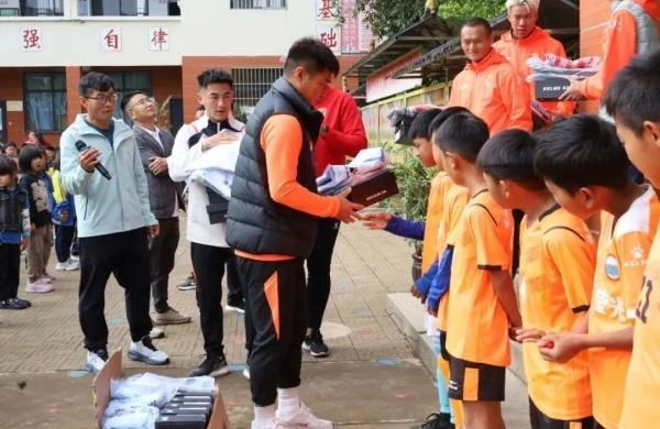 作为“行梦莹光”公益活动发起人之一,德宏队15号队员罗本行在活动中分享了发起公益活动的初心。他表示,发起“行梦莹光”公益行,就是希望以点点微光守护每一位怀揣足球梦的少年,让热爱不被辜负,让梦想有路可寻。“陇川是我的家乡,陇川县民族少体校足球队的教练是我的启蒙恩师,此次活动既是一场感恩之旅,更是一次足球精神的传承。”罗本行与孩子们亲切击掌,用自身故事激励他们坚守热爱、脚踏实地追逐梦想。