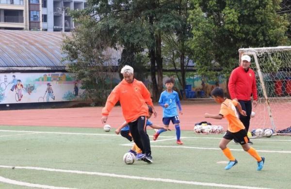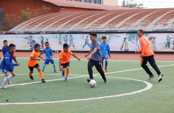 随后,德宏队队员还与孩子们开展了一场趣味足球赛。赛场上,德宏队队员现场示范带球、传球等动作要领,耐心指导孩子们掌握足球技巧。孩子们快乐奔跑、默契配合,在绿茵场上尽情挥洒汗水,脚下的足球仿佛被赋予了方向,欢声笑语回荡在校园的每一个角落。
