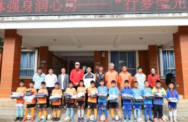 滇超联赛德宏队队员刚踏入校园,便受到了孩子们的热烈欢迎,校园里满是激动的欢呼声与期待的目光。德宏队一行认真听取了陇川县青少年足球队的建设与发展情况介绍,深入了解边疆校园足球的开展现状与孩子们的训练需求。随后,德宏队队员为孩子们送上了精心准备的训练服、球鞋等专业足球装备。