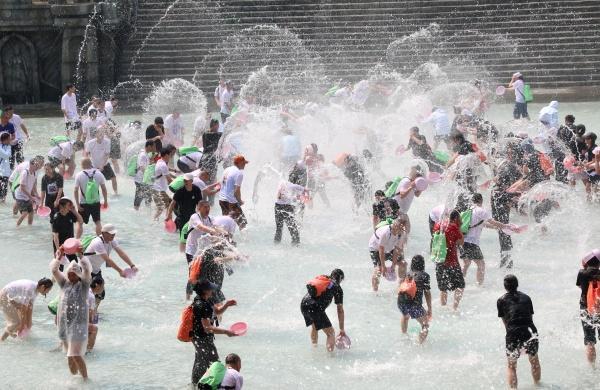 开幕式的尾声,伴随着欢快的傣族乐曲,全场进入集体泼水狂欢环节。飞溅的水花不仅传递着傣乡的新年祝福,更象征着奥林匹克团结奋进的力量。